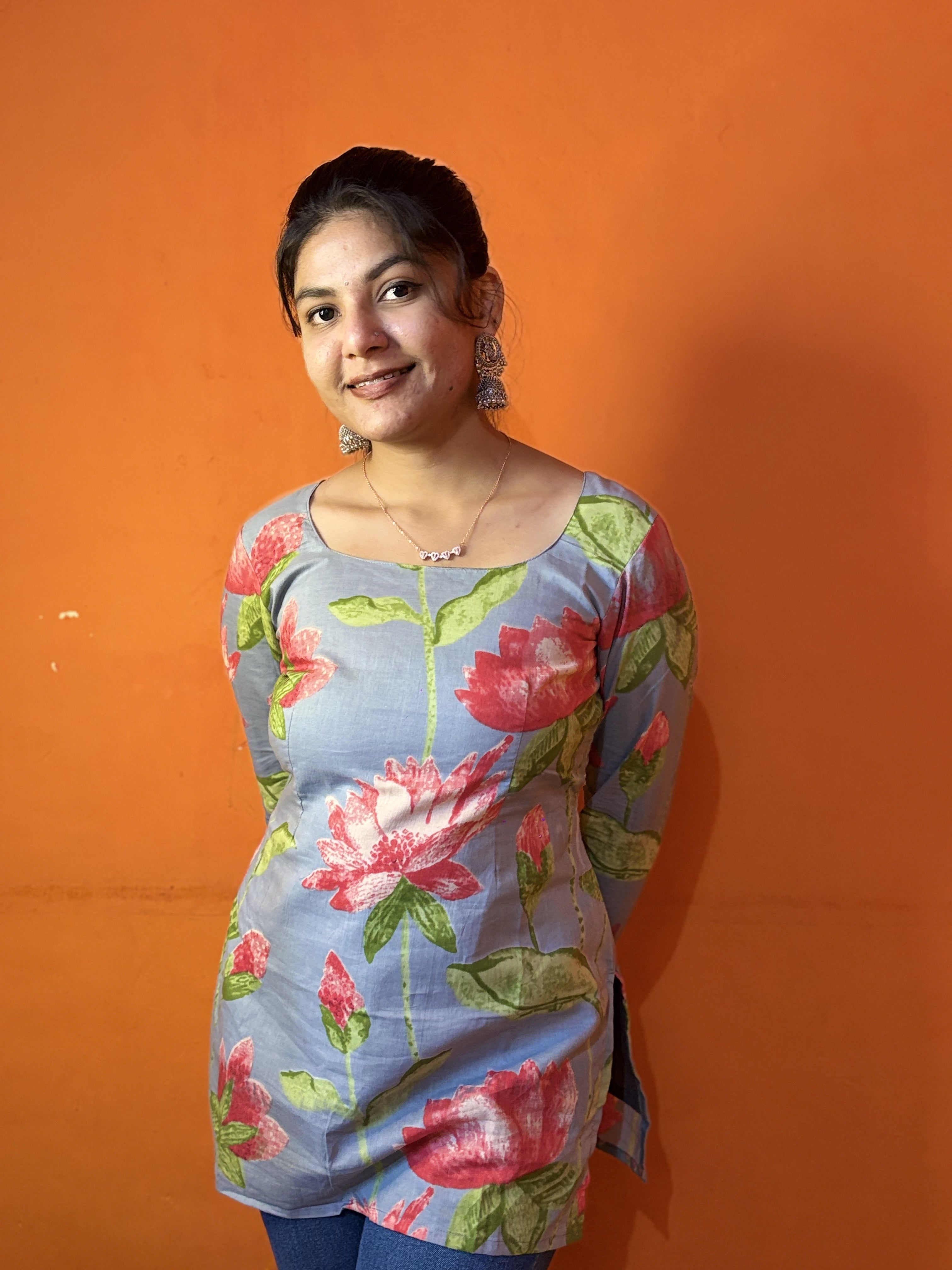 Floral Tie-Shoulder Short Kurti